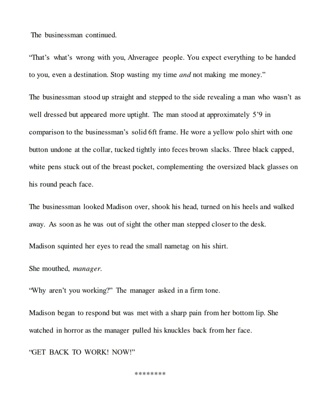 Trevor Fracaso, born and raised in Ahverage by his single father, never imagined being able to live anywhere else. That is until his estranged mother sent for him to move to Athertown and take the test on his 18th birthday. Trevor reluctantly accepted the invite and ventured into a new world engulfed in customized traditions and deep societal secrets that if exposed could change the world again, forever.